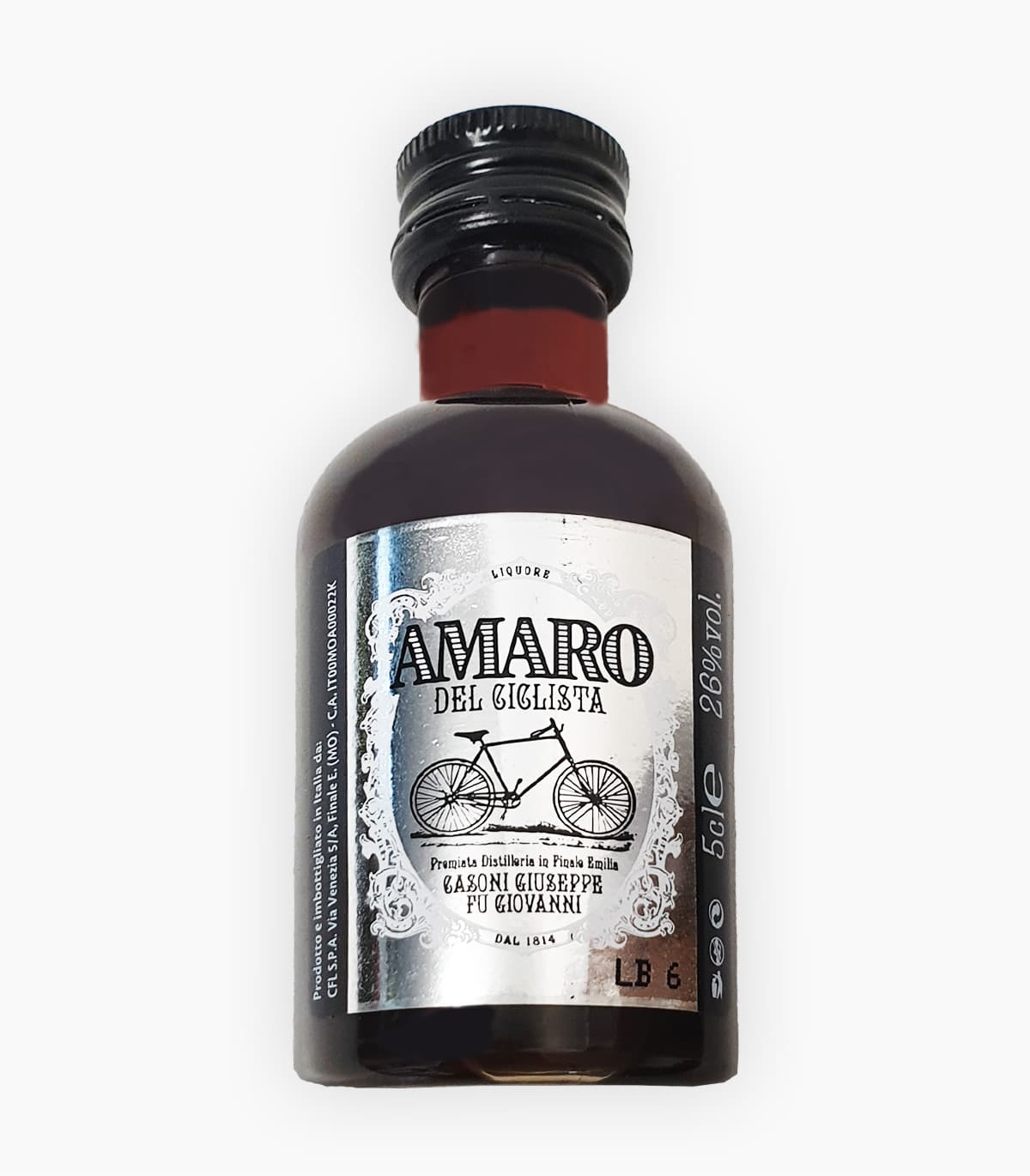 L’Amaro del ciclista nasce da una vecchia tradizione della famiglia Casoni che vedeva offrire un bicchiere di amaro come tonico dopo una lunga pedalata. Nasce così un amaro frutto della sapiente miscela di 15 erbe (tra cui rabarbaro, china, liquirizia, genziana, ginepro e achillea moscata) e da un lento processo di distillazione ed estrazione a freddo capace di regalare un gusto unico. Al naso colpisce con un mix di erbe e spezie nel quale si riconoscono liquirizia, rabarbaro e china, ginepro e anice stellato. Al palato ha una forte connotazione erbacea grazie al mix erbe dove spiccano i sapori forti di china e liquirizia.